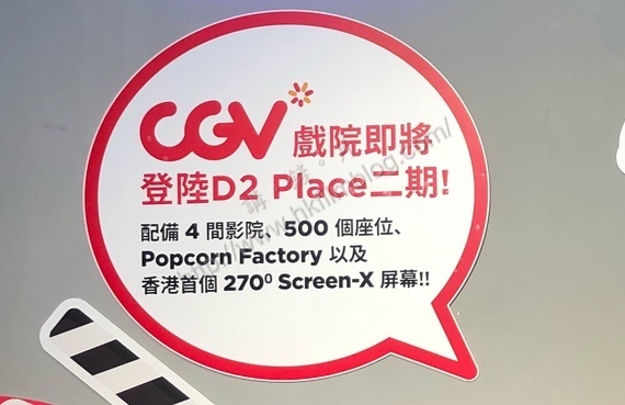 上圖所見,便是「講。鏟。片」情報人員於D2 Place二期的地下大堂所攝,可以看到已經出現關於CGV戲院的介紹,當中寫上「CGV戲院即將登陸D2 Place二期」的字眼。