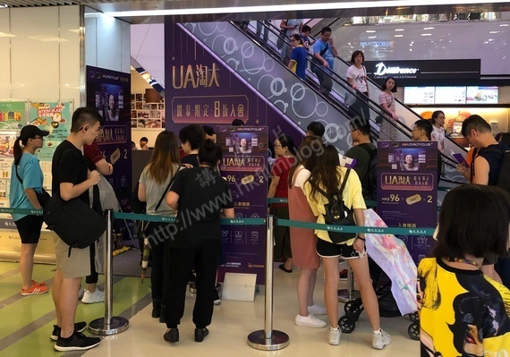 上圖所見,便是「講。鏟。片」情報人員於昨天在淘大花園商場所攝,可以看到當中UA院線擺下了櫃檯,並以「UA淘大開幕限定8折入會」作為賣點。