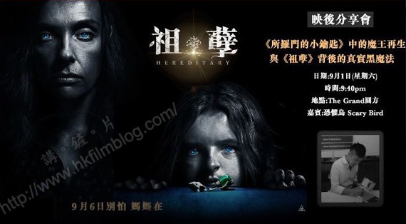上圖所見,便是在九龍站The Grand官方網站的截圖,可以看到鐳射發行的驚慄電影《祖孽》將於九月六日在港上映,並安排於九月一日晚上九時四十分在該戲院放映優先場。不過有趣的是,就是該次卻設有映後分享會,邀請了嘉賓恐懼島以「《所羅門的小鑰匙》中的魔王再生與《祖孽》北後的真實黑魔法」作為主題。