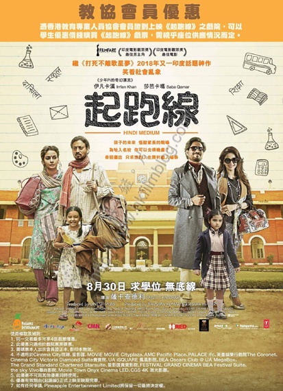 菠蘿發行、夢太奇與中國3D數碼娛樂聯合發行的印度電影《起跑線》於八月三十日上映,而上圖所見,便是該片將為教協會員提供優惠。憑香港教育專業人員協會會員證到上映《起跑線》的戲院,可以學生優惠票價購買《起跑線》戲票。