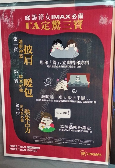 其實,UA院線的溫馨提示,其實是宣傳了該戲院的服務,當中包括可以借用披肩、在小食部購買食品可獲暖包一個,以及在部份戲院提供廿五元一杯的熱朱古力。一個溫馨提示,除了來得有點趣味外,更可為電影宣傳之餘,同時也宣傳了UA院線服務,也算是一個不錯的策略吧!