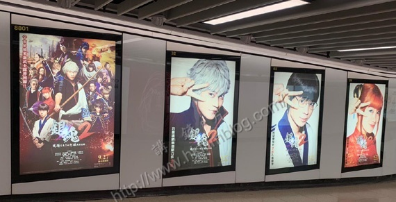 上圖所見,便是「講。鏟。片」情報人員日前於港鐵九龍塘站與又一城出口的行人通道所攝,可以看到其中一角推出了羚邦發行的日本漫畫改編電影《銀魂2:規矩是為了打破而存在的》宣傳品,而且還以一套四款的設計。