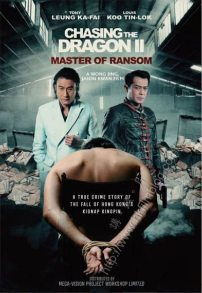 上圖所見,便是一部名為《Chasing the Dragon II: Master of the Ransom》,令人聯想起是《追龍2》,海報看到該片由王晶與關智耀合導,海報裡出現兩位主角梁家輝與古天樂,而同時看到一名男子被綁架的模樣。