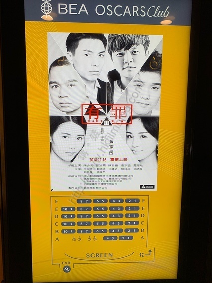 《有罪》於前天、昨天和今天分別於九龍灣UA MegaBox與尖沙咀UA iSquare各開一場晚上十時前後的場次,而情報人員觀賞周五晚上九時五十五分的場次。雖然電影忽然上映,但是在五十二個座位的UA MegaBox BEA Oscars Club四院,卻有觀眾十八位,入座率超過三分之一。