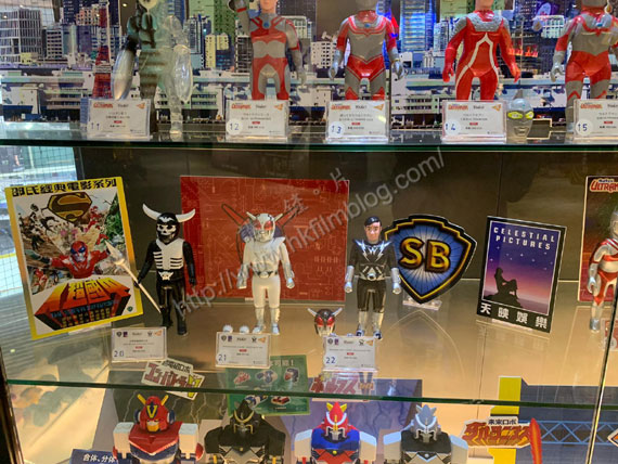 上圖所見,便是UA MegaBox戲院附設的精品部門,可以看到天映近年修復邵氏的電影,不過除了復修電影推出影碟外,其版權也可以有其他相關商品的用途。而上圖所見,便是其中一部經典電影《中國超人》推出的商品,當中包括了片中主要人物的手版模型。