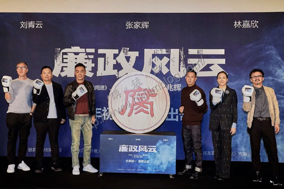 英皇發行的《廉政風雲:煙幕》日前於北京舉行了首次發佈會,當中出席者包括導演麥兆輝、監製莊文強與黃斌,而三位主角劉青雲、張家輝與林嘉欣亦有出席。據了解是次故事講述香港廉署一宗重要案件證人逃走英國事件。
