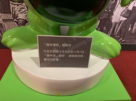 原來這是配音電影《豬年運程》而來的吉祥物,當中這隻綠色的東西,原來若跟八月八日至十一月七日「餓木命」的人合照,可以行好運。