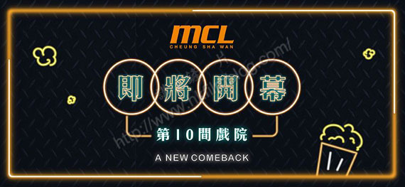 上圖所見,便是來自MCL戲院的官方網站截圖,當中顯示MCL旗下第十間戲院MCL長沙灣戲院「即將開幕」。