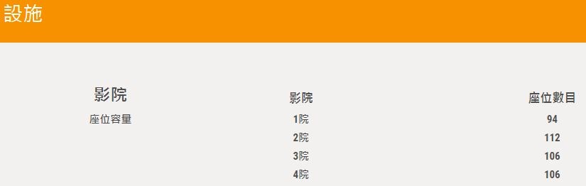 而當按入MCL長沙灣戲院時,雖然未有顯示其票價,不過卻已經顯示其戲院座位數目。MCL長沙灣戲院共有四個影廳,一院設座位94位,二院為112位,至於三院與四院也同樣設有106位。