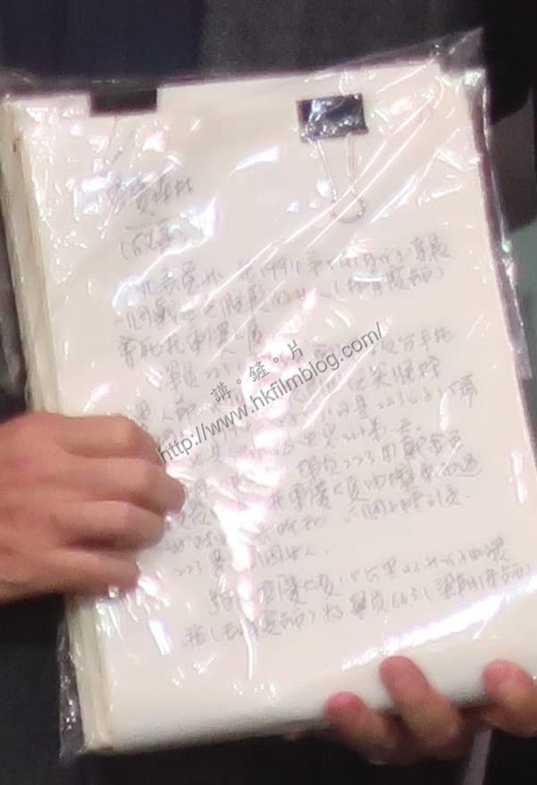 王家衛在獲獎時,除了感謝香港編劇家協會外,更拿出自己的九四年名作《重慶森林》劇本手稿出來,令過去指王家衛沒有劇本的傳聞不攻自破。