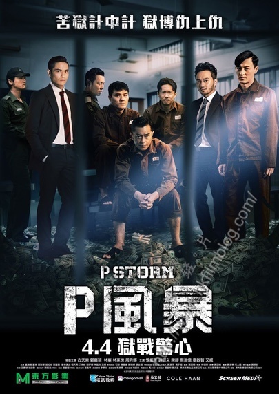上圖所見,便是電影《P風暴》的新版海報,海報繼續採用了在獄中「一字排開」的設計,當中唯一可以坐著的便只有飾演臥底的古天樂。其餘演員則包括了鄭嘉穎、林峯、張智霖、林家棟、張繼聰、譚耀文等。海報下方寫上「4.4獄戰驚心」的映期。而上方的宣傳句語除了原有的「苦獄計中計」外,還加了下句「獄博仇上仇」。