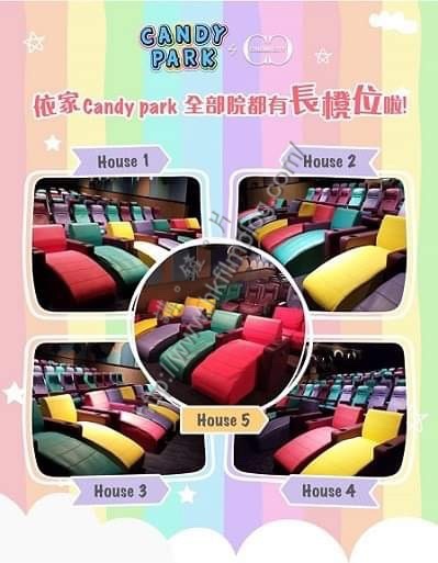 Candy Park by Cinema City在最初開業時,在五個影廳中只有五院的第一排設有長櫈座位,該種座位可以該觀眾躺著來觀賞電影,以配合前排跟銀幕距離較為接近的情況。未知是否這種嘗試獲得的效果不俗的關係,繼而擴展至該戲院的其他的影廳。