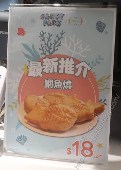 上圖所見,便是「講。鏟。片」情報人員日前於荃灣愉景新城的Candy Park by Cinema City的小食部所攝,可以看到該戲院推出了新款小食鯛魚燒。看起來仿如是魚形形狀的燒餅,而每客售價承惠十八元兩件。