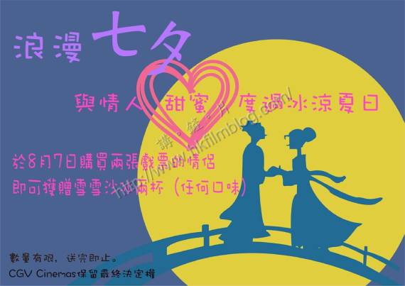 今天是農曆七月初七,也是俗稱「七夕」。雖然這個節日在香港的注重程度遠比起二月十四日情人節或農曆正月十五的元宵為低,不過仍有戲院於今天「應節」。