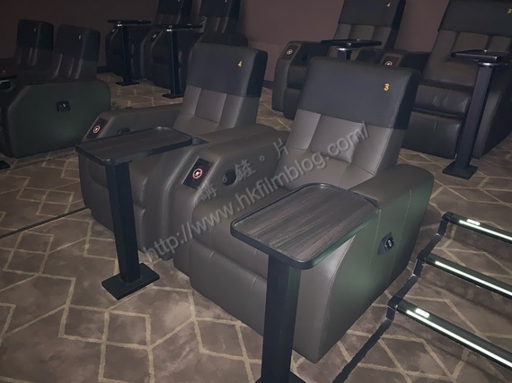 座椅方面,可以看到所有座椅沒有左、右之分,座椅一方設有餐桌,並且可以移動位置,另一方則設有召喚制,按下便有職員協助,同時設有座椅調較位,主要是調較下方的腳踏。美中不足的是,K11 ArtHouse Black Box座椅並沒像其他貴賓院座椅般,提供USB充電位置。
