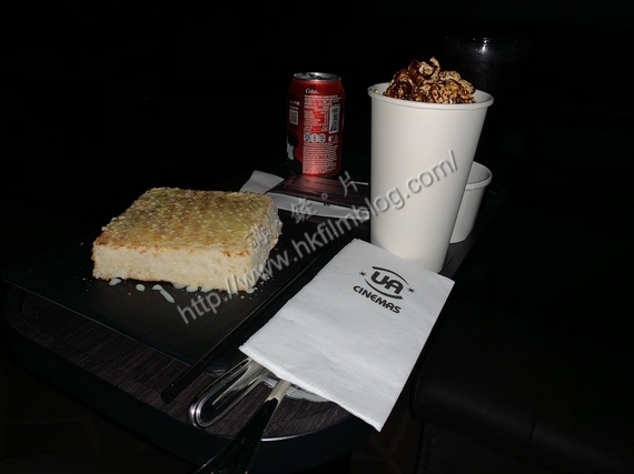小食方面,目前五十元的小食套餐的款式,有點像昔日UA太古城中心Director’s Club,提供任飲汽水與任食爆谷,當中汽水採用罐裝汽水,並且提供杯與冰粒,而小食則可從兩款多士與蛋糕中選擇,而測試則試了奶油多士,而多士採用木板呈上,同時提供刀叉等。奶油多士的奶油偏少,但仍算是味道不俗。提了解,Black Box稍後也會再提供其他套餐選擇,當中包括另行收費款式。