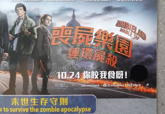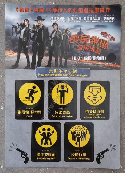 上圖所見,便是「講。鏟。片」情報人員拿到的電影宣傳品,屬於索尼發行今天上映的《喪屍樂園:連環屍殺》,當中提供了「末世生存守則」。