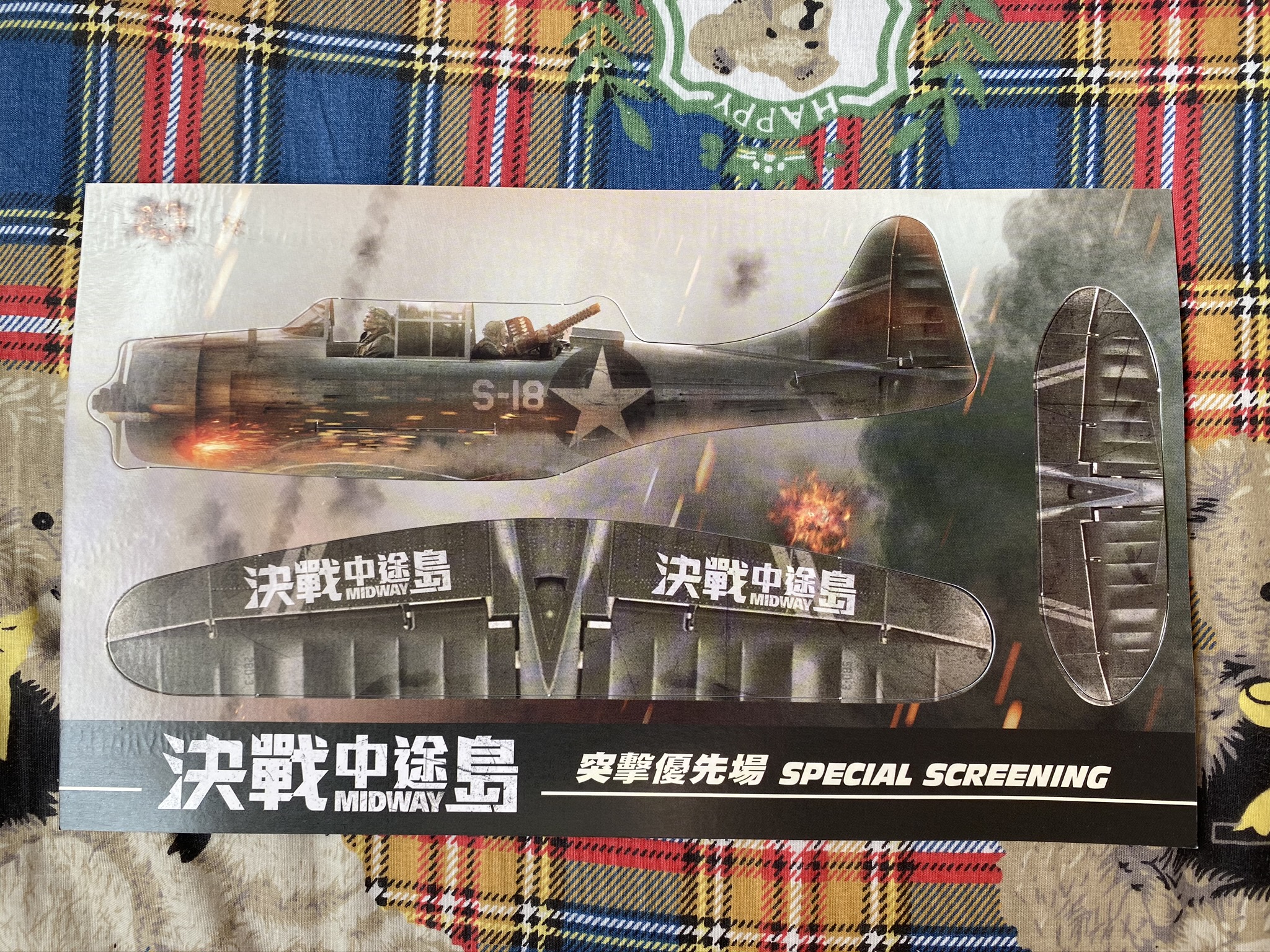 双喜發行的荷里活電影《決戰中途島》將於本周四在港正式上映,並於上周五晚上假尖沙咀海運戲院舉行優先場。而上圖所見,便是該晚的優先場戲票。看起來有當年作戰S-18戰機的配件,而背面則顯示其座位與行數,設計已經算是不錯。