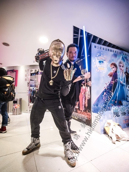 除了包場睇戲,這個活動其實是星戰迷一年一度的聚會,除了專業而資深的Cosplayer會全副武裝到現場跟各位合照,在場內可以找到不同種類的白兵,黑武士,甚至黑帝,他們都是由501st Hong Kong Garrison 帝國軍第伍零壹旅香港駐軍的隊員所扮演。有些Cosplayer更花了不少心思來突出自己的造型,像其中一位便以一套自製的日本武士白兵裝扮來吸引眼球,而HIP HOP版的C3PO亦深受現場人士歡迎,爭相合照。好些來參與的觀眾帶著光劍發揮創意,悉心以星戰主題打扮一番,最開心是現場的小朋友,小男孩扮成Kylo Ren, 小女孩則變成Rey, 大人亦彷佛回到了童年,紛紛舞動光劍、架起展露原力的姿勢,幻想自己化身絕地武士,以相片留下美好回憶。