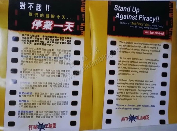 九十年代,當年DVD仍然盛行的年代,盜版情況相當嚴重,而當年業界希望政府可以加大加度,而香港戲院商會更設有懸紅予能成功緝拿盜版人士。然而,隨著電影市場的改變,再加上近年電影在落畫不久便已推出音像產品,故此再沒有這類盜版的情況。不過沒想過在廿一年後,卻因為更嚴重的理由而停業,而且停業時間更長。
