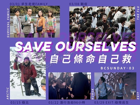 上圖所見,便是百老匯電影中心三月bc Sunday的片目,以「自己條命自己救」為主題,當中不乏極為應景的選片,如三月八日選映的韓國電影《戰疫》,而這個系統的最後一部,則是去年九月上映,由高先發行的韓片《EXIT:極限逃生》。