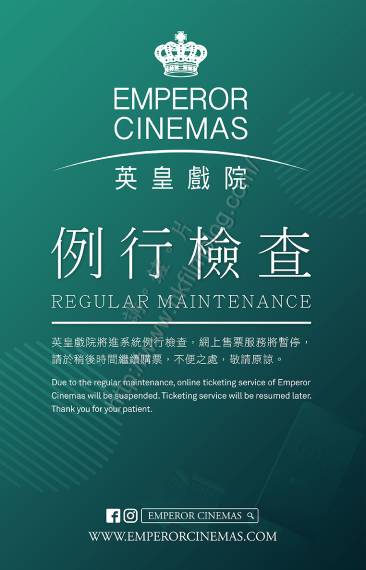 面對著這個空檔,亦有院線選擇為其官方網站例行檢查,順道暫停網上購票服務,便中便包括了英皇戲院的網站。
