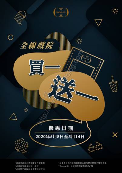 至於Cinema City方面,則於戲院重開的首星期,即五月八日至五月十四日提供戲票買一送一的優惠,優惠需要到票房以正價購票。