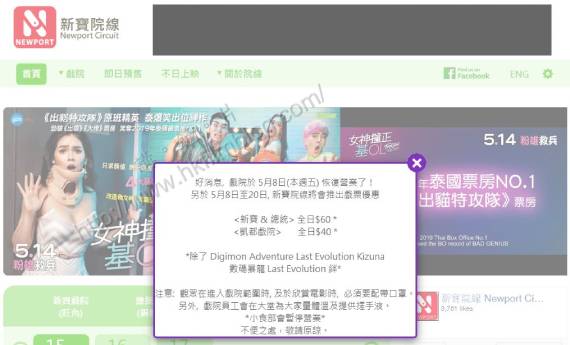 據了解,屯門凱都戲院成人正價票價為$60,而在戲院重開前,新寶院線其實已宣佈於五月八日至二十日提供票價優惠,除個別跟片主有協議電影外,票價下調至$40,並於網站看到其優惠。