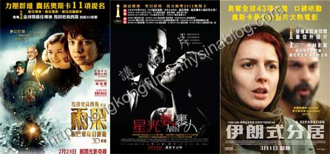 Exhibitors must cut screenings for these mainstream Hollywood movies to make way for the Oscar movies, perhaps even cutting those for 《失戀33天》, as this week is the final chance to capitalize on Oscar momentum, and next week the opening of 《桃姐》will further complicate things.