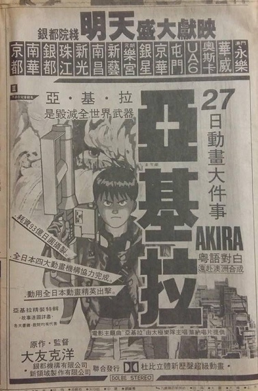 看看當年電影《亞基拉》的廣告,當年這部日本動畫屬銀都發行,在銀都院線上映,當中共有十五間戲院上映,然而當中還沒有太多改動的,卻只有澳門的永樂戲院。