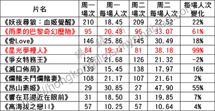 也許,我們可以從昨天跟星期一的票房變化看個究竟。