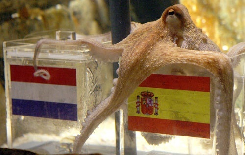 在今屆南非世界盃中,來自德國一家水族館的八爪魚保羅可算是大顯神威,其預測的八場賽事全中,風頭也許比起誰是冠軍更具話題。