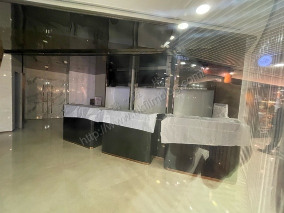 上圖所見,便是「講。鏟。片」情報人員於今天下午在銅鑼灣皇室堡四樓的皇室戲院所攝,可以看到該戲院的售票大堂情況,當中上方兩部電視屏幕關掉,下方的電影海報燈箱也沒有海報,就連櫃檯也用上了膠袋封起。驟人眼來,還令人誤以為戲院已經結業,只是留下棄用器材似的。