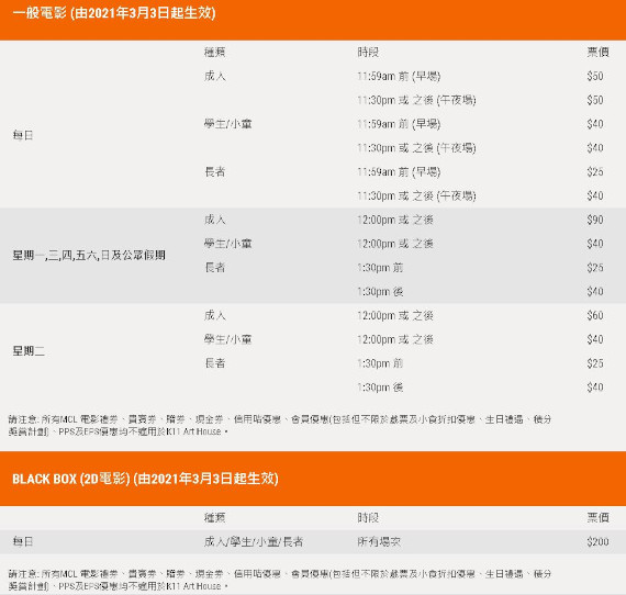 至於票價水平方面,可以看到票價結構將沿用MCL的結構,成人基本2D票價為90元,而學生與小童票價卻只是40元,看來也許希望吸納有關觀眾。至於貴賓院Black Box,票價則為二百元。