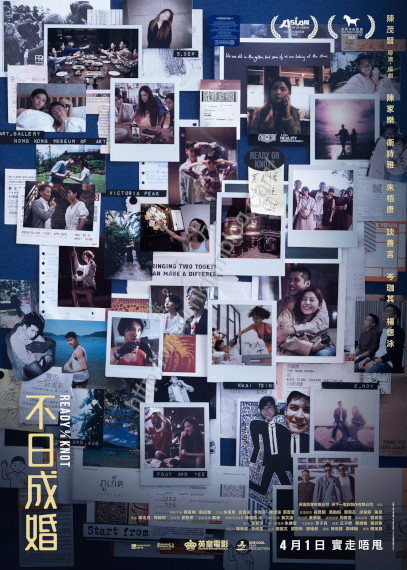 上圖所見,便是電影《不日成婚》的新版海報,新版海報仿如一個壁佈板,海報貼上不同的川與單據,而相片又以兩位主角陳家樂與衛詩雅為主,大家可以從相片看到兩位主角在片中的關係的發展歷程。