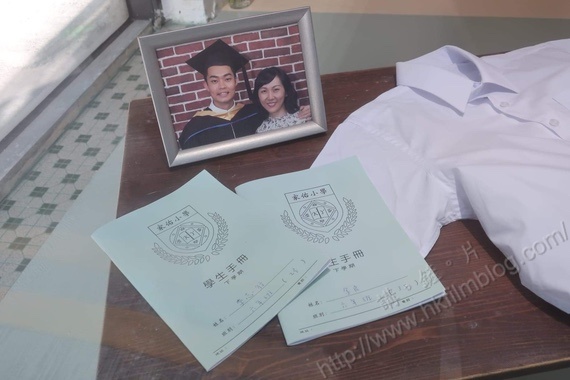 門口的櫥窗擺放了一套小學校服、李志行與余良的學生手冊,以及片中李志行於大學畢業的相片。