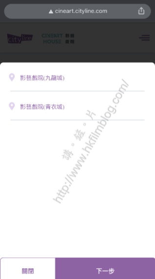 青衣城的影藝戲院於今天起可使用網上購票,而購票系統跟九龍城影藝戲院同樣採用購票通系統。觀眾只需登入影藝戲院在購票通的專頁,便可以按電影或戲院選擇電影及場次。需要留意的是,倘若先選電影再選場次時,要留意先要選擇希望觀賞的戲院,以免選錯戲院場次。
