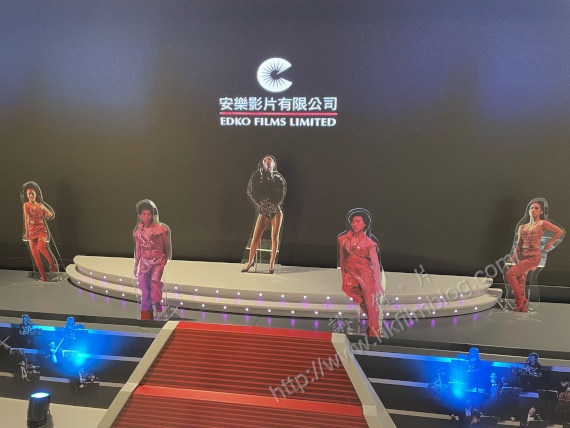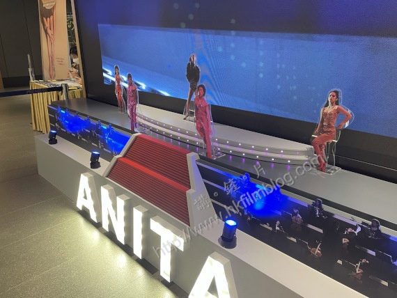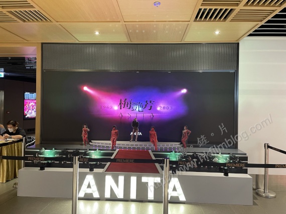 這個《梅艷芳》宣傳可以說不惜工夫,當中下方有英文片名「Anita」的名字,然後搭製了舞台,還有舞台不同顏色燈光效果,再用上膠板模式梅艷芳在舞台,在旁還有四位舞蹈員,後方則以滾筒式播放電影《梅艷芳》預告片段。