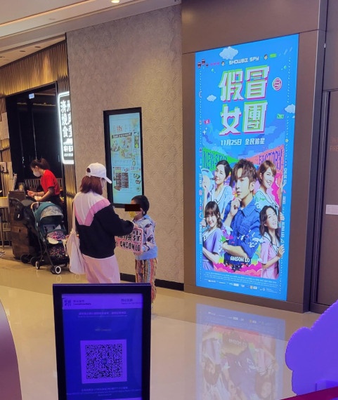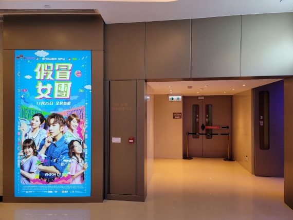上圖所見,便是宏寰文化傳播出品、黃永峯出品兼監製,徐梓耀執導兼編劇,盧瀚霆、蘇皓兒、陳紫萱及李靜儀主演,擬於十一月廿五日上映的電影《假冒女團》的電影宣傳板,有關的宣傳正正擺放在北角匯ACX Cinemas的一角。