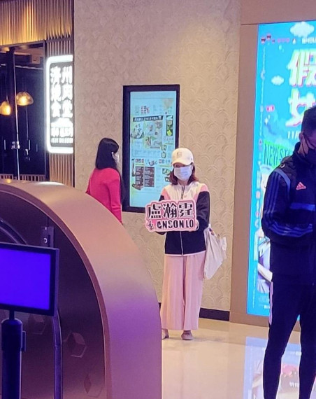 如斯舉動的目的,該是擬似讓年幼的兒子拿著手機,然後自己則手持著「盧瀚霆Anson Lo」的宣傳板,跟戲院的宣傳品合照。