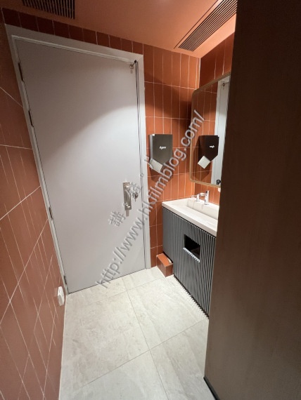 而在廁所之外,便是洗手盤的位置,雖然仍設有兩個洗手盤的位置,可以左方的洗手盤位置卻跟大門極為接近。由於該戲院男洗手間大門是從外推向內,稍不留神便會撞到正在洗手的人士。