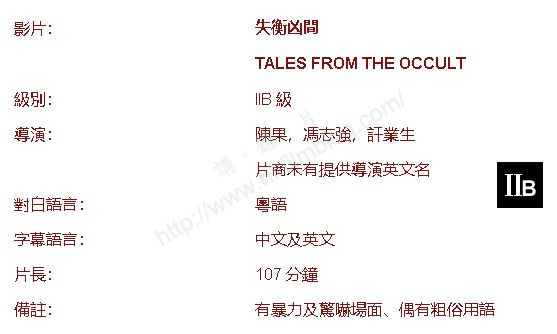 上圖所見,便是電影《失衡凶間》在負責電影檢查的電影、報刊及物品管理辦事處的搜尋結果,電影於本月下旬送檢,由陳果、馮志強與訐業生命合導,電影片長為107分鐘,對白語言為粵語,因為「有暴力及驚嚇場面、偶有粗俗用語」而被評為不適合青少年與兒童觀看的II B級別。