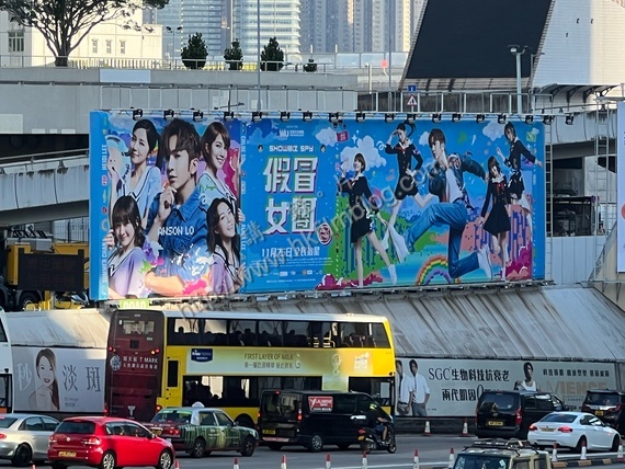 「講。鏟。片」,報人員於周末經過紅磡海底隧道九龍入口時,發現近香港體育館一方的位置,已換上了宏寰文化傳播出品兼發行、Screen Media院線發行、黃永峯出品兼監製、徐梓耀執導兼編劇,盧瀚霆、李靜儀、陳紫萱、蘇皓兒、李炘頤主演的《假冒女團》的宣傳。當中左方屬於海報款式,而右方則仿如置身場景之中。惟設計上用上起格,或會令觀眾誤會是否在印刷時出現錯誤。