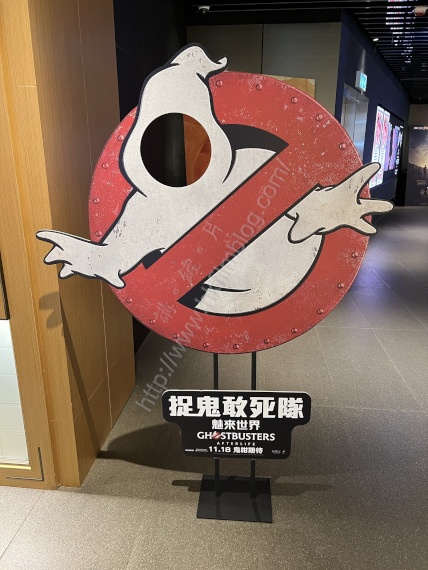索尼發行的《捉鬼敢死隊:魅來世界》將於十一月十八日在港上映,而上圖所,便是「講。鏟。片」情報人員在九龍站Premiere Elements大堂所攝。當中大堂的一角擺放了電影《捉鬼敢死隊:魅來世界》的宣傳,宣傳品用上了電影《捉鬼敢死隊》的經典標誌,而在鬼部分則留了一個圈,可以讓觀眾伸出頭來合照。
