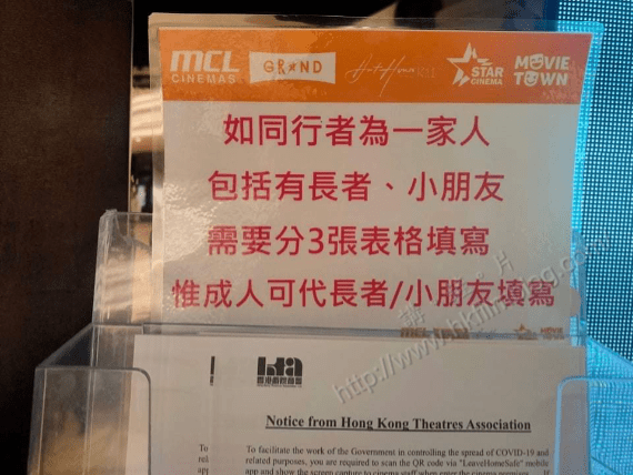 香港目前的戲院營運受到政府相關防疫規定所規範,觀眾在入場時需要使用「安心出行」手機應用程式掃描二維碼,或填寫個人資料。然而,當一家人入場時又需要怎樣,當中有戲院便特別提供了指示。