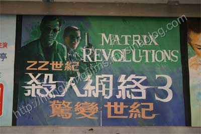 華納兄弟發行的《22世紀殺人網絡3驚變世紀》於零三年十一月在港上映,而上圖則是當時在位於灣仔已結業的京都戲院外所攝,可以看到該戲院的手繪畫板出現了該片的畫板。