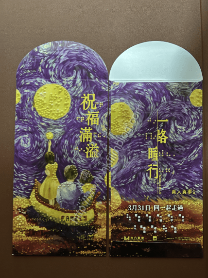 至於利是封的背面,則有著電影《一路瞳行》的基本資料。當中值得注意的是,寫上了「3月31日同一起走過」的字眼,似乎初步有意安排電影於三月底上映。但最終又能否如願以償,還是先要看戲院何埘可以重開。