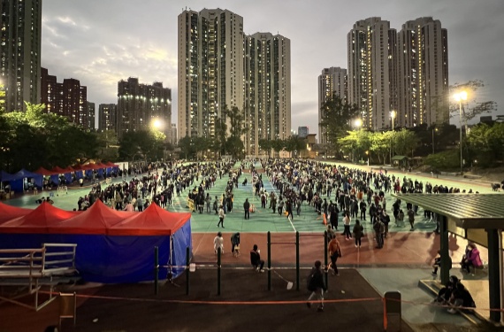 如今,隨著藍田多幢樓宇出現強檢,結果政府安排於藍田配水庫球場設置流動檢測站。惟檢測需求甚殷,結果最終出現在某天黃昏時分有近千人輪候檢測的「盛況」,真的令人感到十分難過。