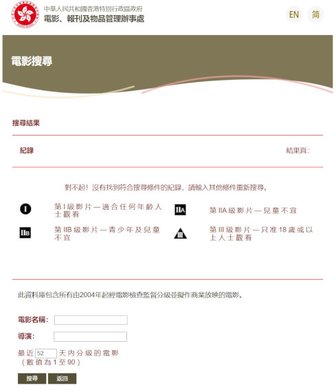上圖所見,便是來自負責電影檢查及分級的「電影、報刊及物品管理辦事處」的官方網站,可以看到使用其雷搜查,看到自二零二二年至今,即是過去五十二天並沒有電影獲得評級。