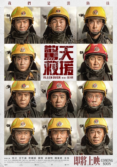 《驚天救援》的港版初版海報以十一位主角以三乘四的消防裝束出現,餘下的一格則寫上片名與導演的名未。電影演員陣容包括杜江、王千源、佟麗婭、韓雪、俞灦明、韓東君與王戈,而特別演出則有印天、伊麗媛、羅家良、蘇岩與丁海峰,同時胡軍與蔣夢婕將作友情演出。